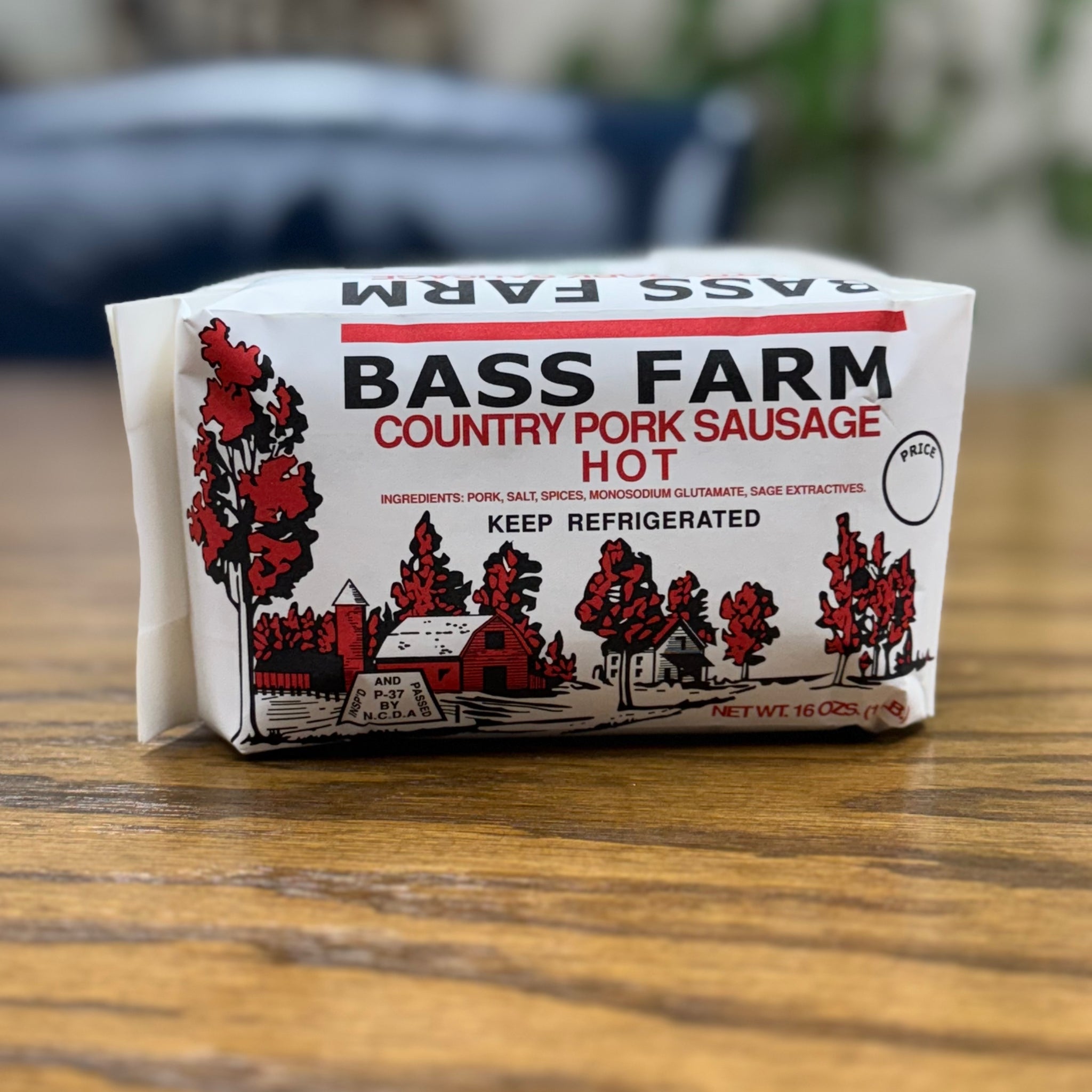 Bass Farm Sausage (1 lb - Mild & Hot) - authentic pork sausage that's so fresh it's made in 100 lb batches and never frozen to make sure they capture the best flavor. (Spring Hope, NC)